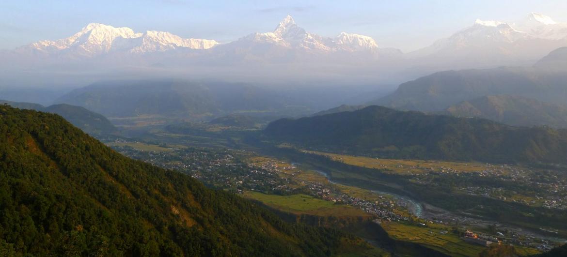 snow-capped Himalaya and look down on Pokhara city and Fewa Lake below. Your